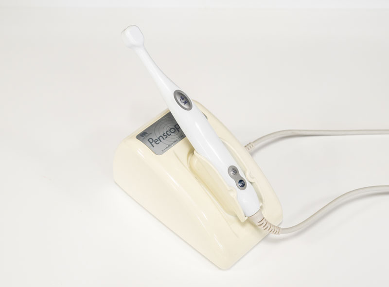 お口の中の状態を記録する口腔内撮影用デジタルカメラ。治療前と治療後の写真を撮って比較します。