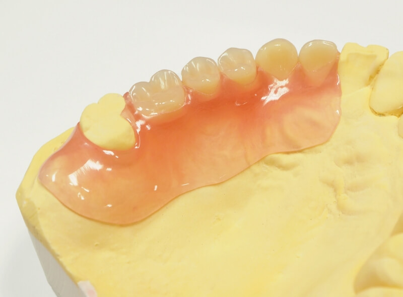 安価に作製でき、ある程度は噛めるようになりますが、素材がレジンに限られるので、壊れやすく違和感を感じることがあります。