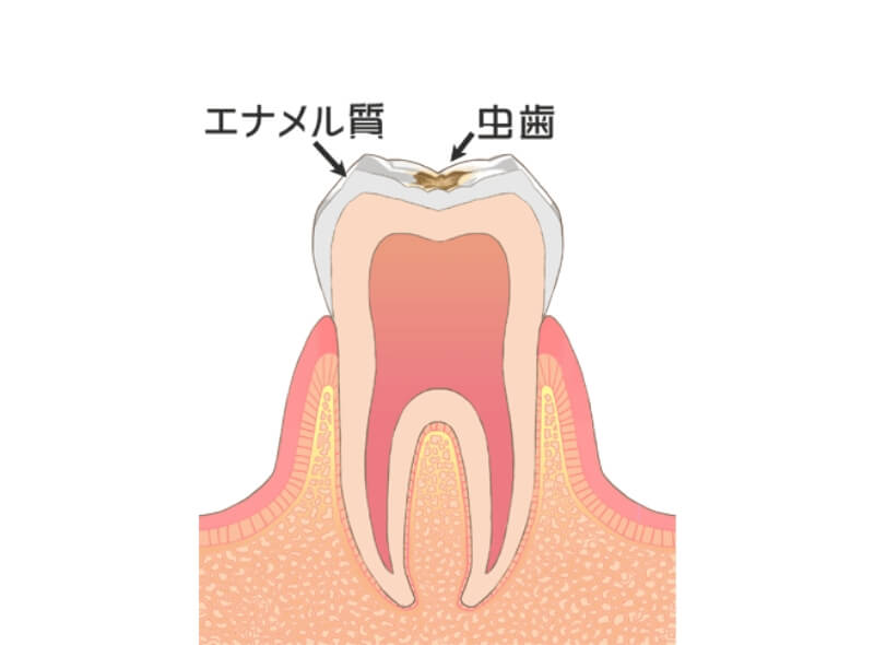 歯の外側のエナメル質が溶け出している状態です。痛みなどの自覚症状はほとんどありません。